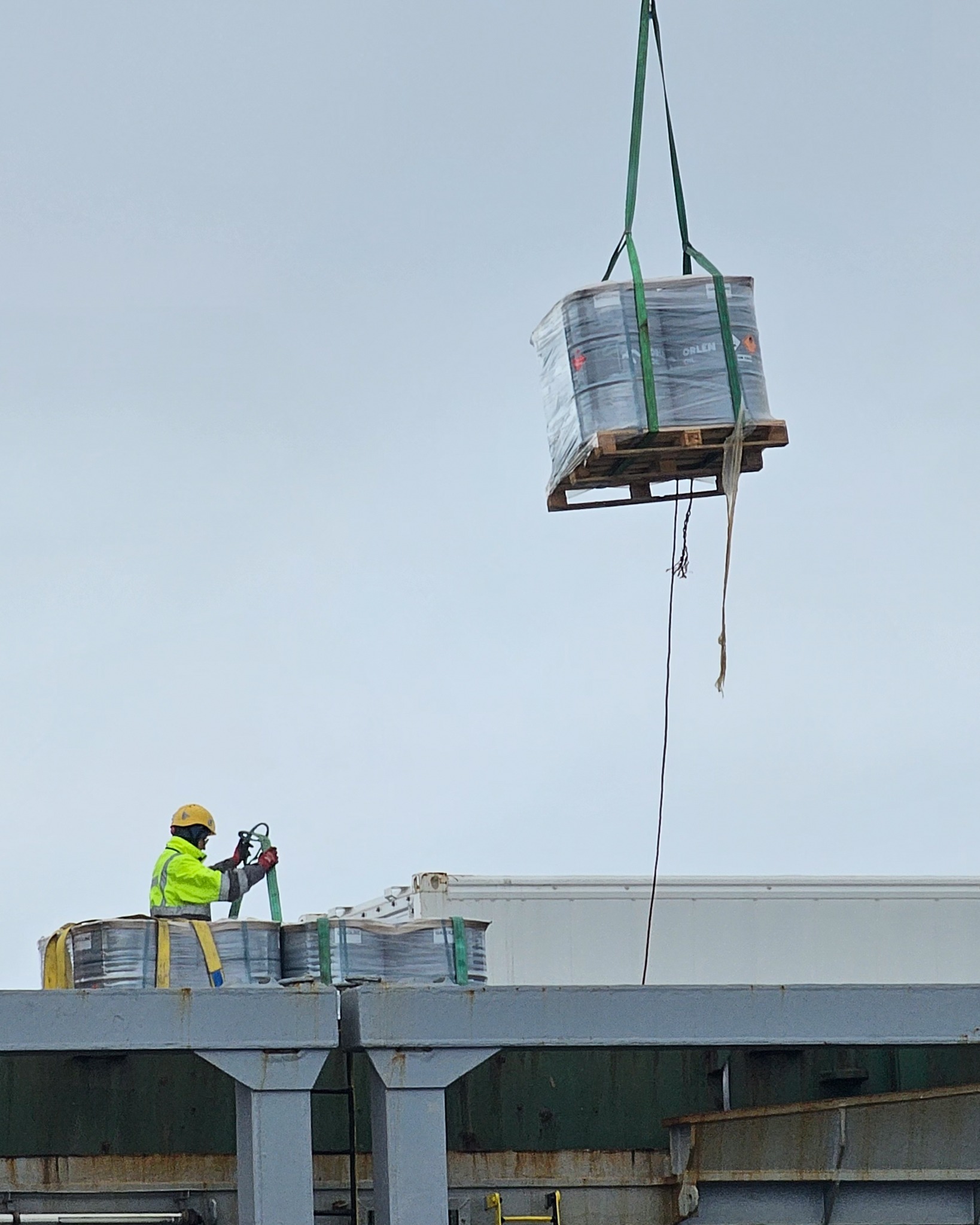 Dzięki wsparciu logistycznemu ORLEN OIL na brzeg trafiły beczki z paliwem ORLEN, które będą wykorzystywane podczas ekspedycji morskich. Zapewnienie niezawodnego źródła energii w tak ekstremalnych warunkach jest niezbędne do realizacji ambitnych celów naukowych i operacyjnych.