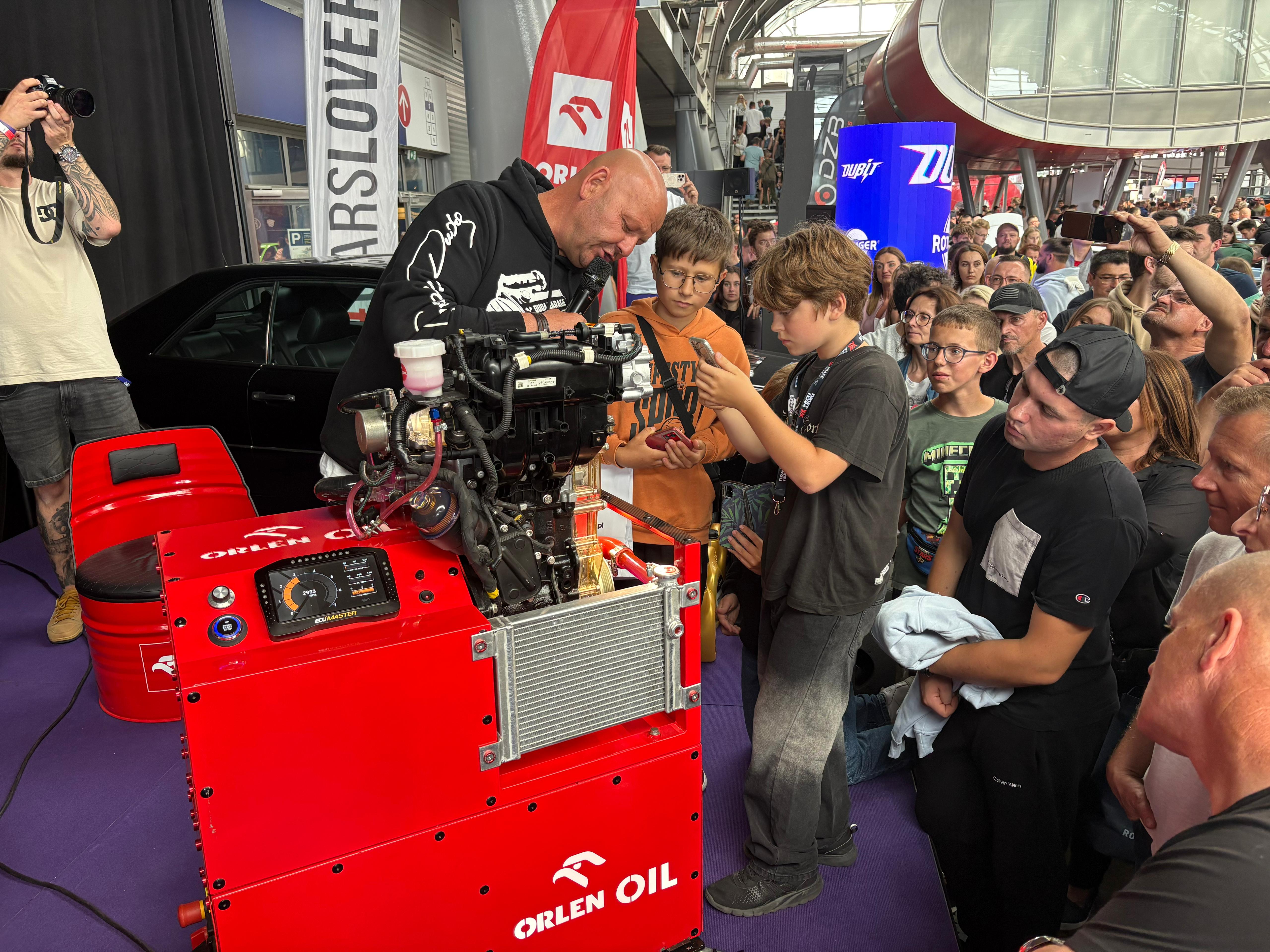Oprócz zabawy towarzyszyła nam praktyczna edukacja w postaci naszego dydaktycznego silnika. Ponownie zaprosiliśmy odwiedzających do zobaczenia na żywo jak pracuje olej i płyn chłodniczy w jednostce napędowej, dzięki przeźroczystym elementom obudowy modelu. Odwiedzili nas również goście związani z Akademią Młodego Mechanika, dla których przygotowaliśmy specjalne szkolenie z wiedzy na temat środków smarowych, połączone z prezentacją silnika edukacyjnego.